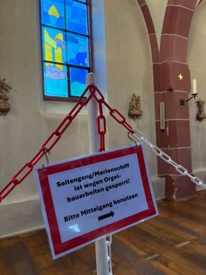 Aus Sicherheits- und Arbeitsschutzgründen ist das Haupt- und Nebenschiff der St. Nikolaus Kirche während der Arbeiten der Orgelrenovierung ab Montag, 15.9.2025 bis Dezember 2025 nur zu den Gottesdienstzeiten geöffnet. Teile des Kirchenraums werden vom Orgelbauer als Lager- und Arbeitsfläche benötigt, da mit einem Lastenaufzug sämtliche Pfeifen ausgebaut werden.