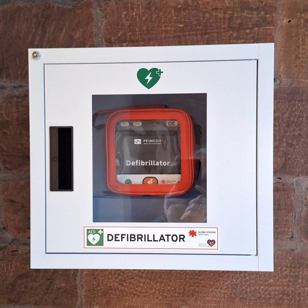 Der Schriftenstand und die Kerzen vor dem Glastüren bleibt weiterhin für Information und Gebet zugänglich.