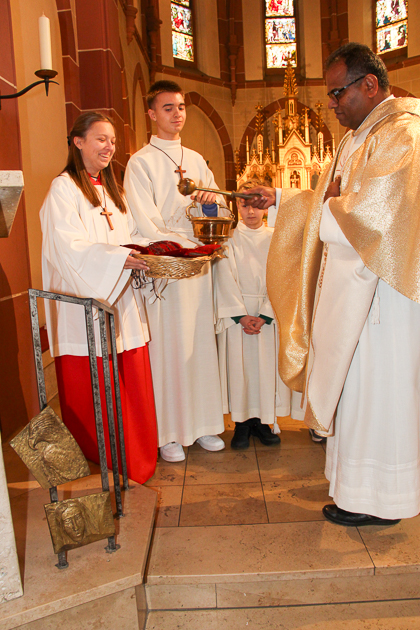 Als Aufnahmegeschenk erhielten alle eine Urkunde und eine Medaille mit dem Heiligen Tarzisius, der Patron der Ministranten.
